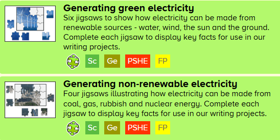 Our ‘Generating electricity’ jigsaw activities introduce pupils to both green and non-renewable energy sources, encouraging them to weigh up the pros and cons of each.